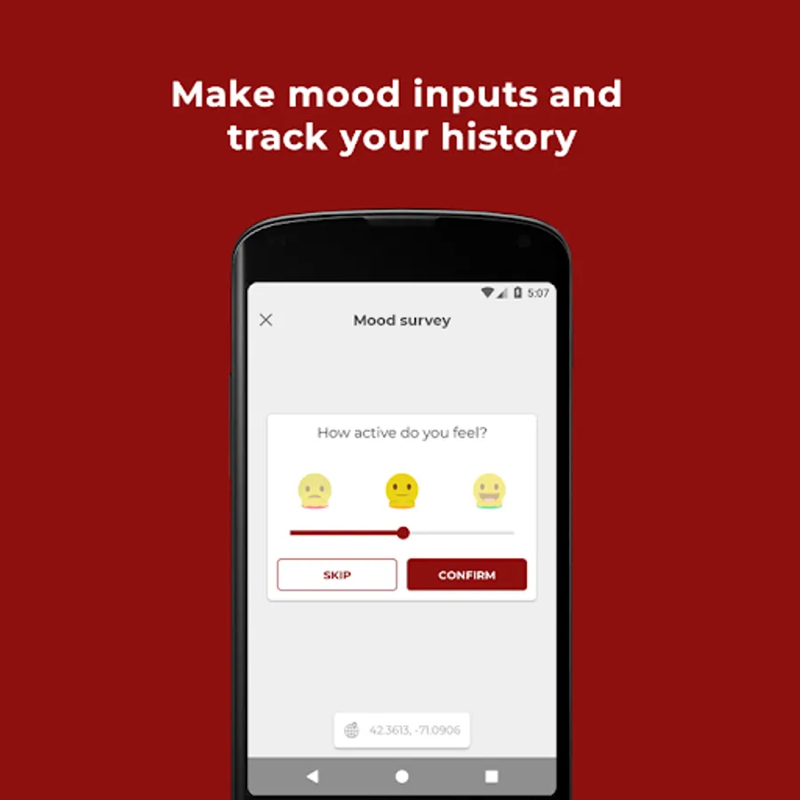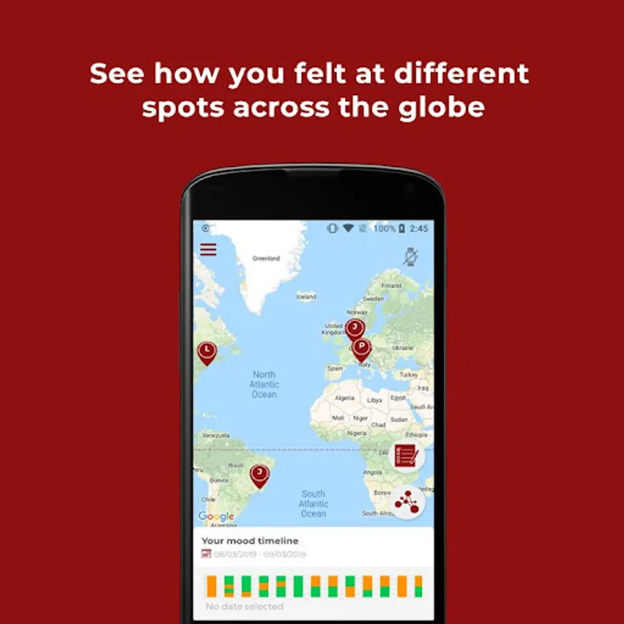 -Save your current mood by answering questions directly from the app, and then you can track how you were feeling around the world