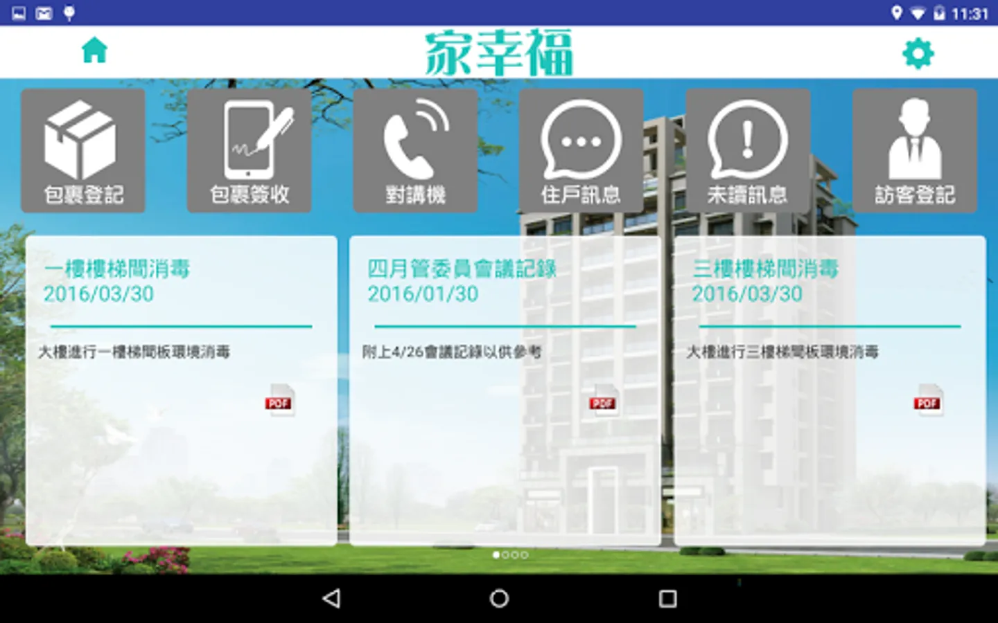 手機就是家中對講機:家幸福即時訊息可立即與社區中心、警衛室聯繫,還有一鍵錄音功能,不用打字就能傳送訊息,手機就是我的對講機。