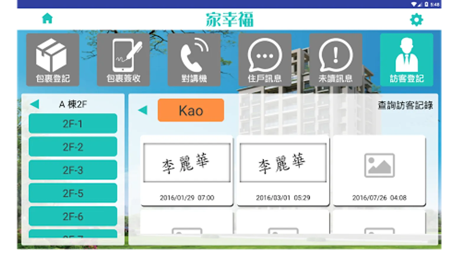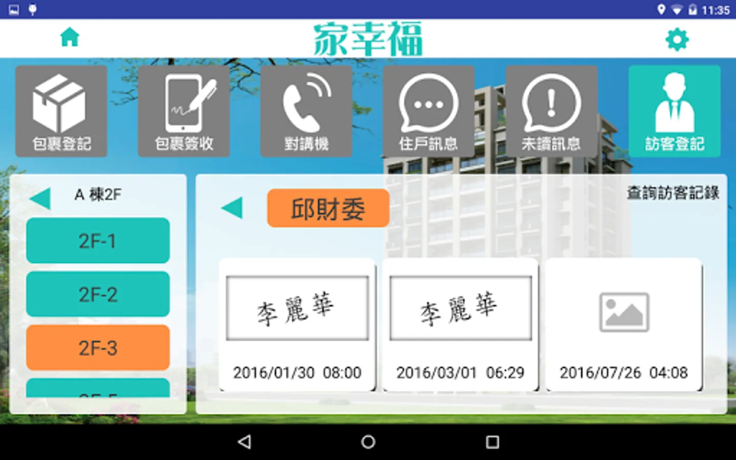訪客資訊線上通知:家幸福提供即時訊息、雙向對話與聊天室,輕鬆與警衛聯繫,立即得知訪客到訪,線上觀看陌生訪客影像,外出也可線上與訪客見面,還能雲端留存訪客紀錄,輕鬆應對訪客又保有個人隱私。