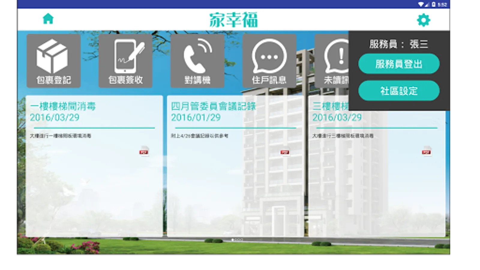 社區資訊一指得知:社區公告、社區規章立即查詢,不需紙本發送、不需張貼公告,環保又有效率。