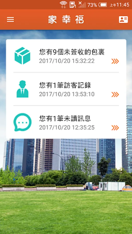 訪客資訊線上通知:家幸福提供即時訊息、雙向對話與聊天室,輕鬆與警衛聯繫,立即得知訪客到訪,線上觀看陌生訪客影像,外出也可線上與訪客見面,還能雲端留存訪客紀錄,輕鬆應對訪客又保有個人隱私。