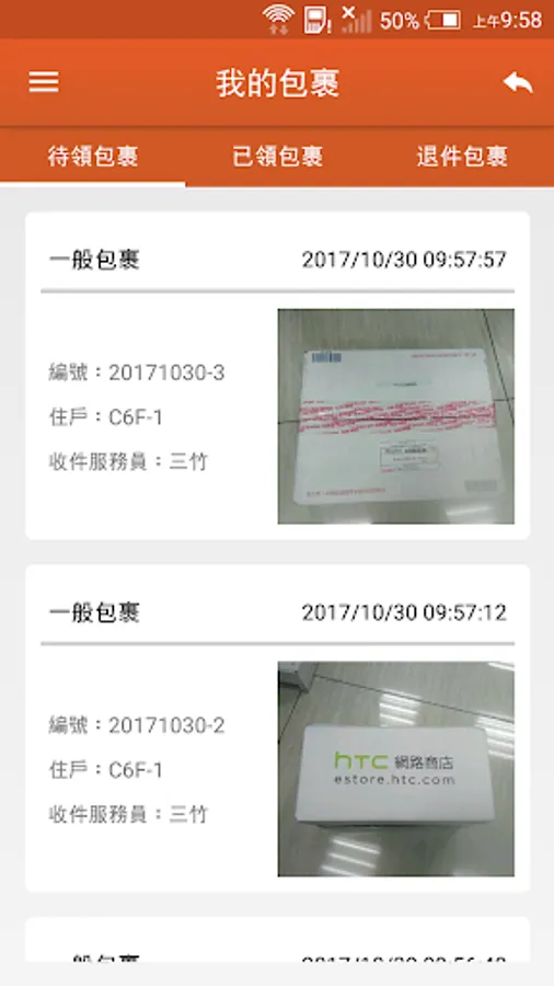 包裹資訊線上收發:郵件包裹立即通知,瀏覽包裹照片,電子化簽收,交辦寄放物品也有雲端紀錄,線上收發包裹變成時尚的行為。