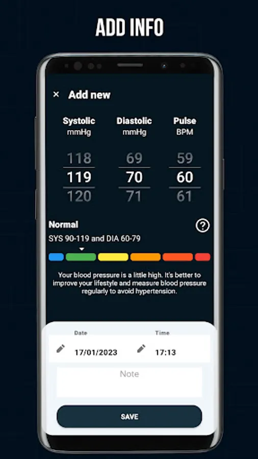 • Identify blood pressure zones- Blood Pressure monitor app provides information about different Systolic and Diastolic ranges. After users enter indicators, this app will give the result for users to better understand their condition.