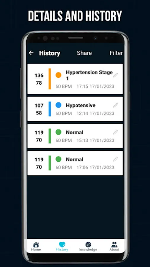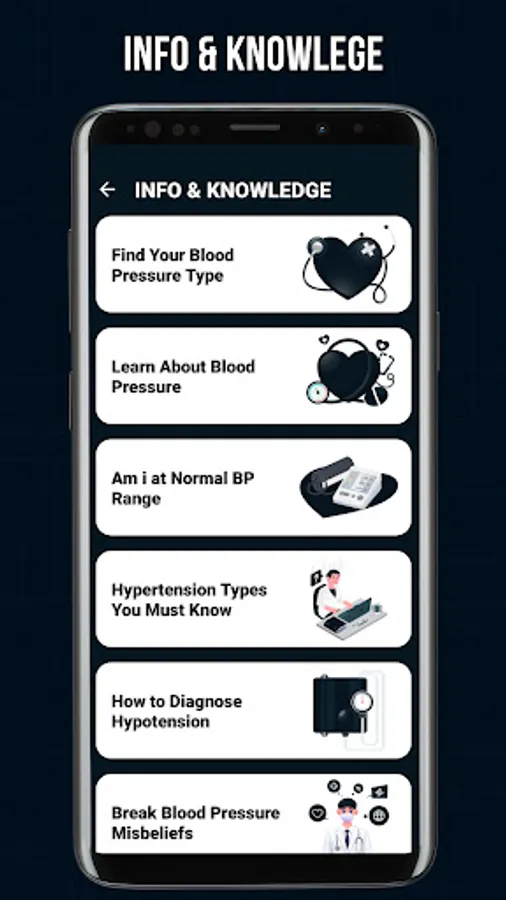 The application provides all information about blood pressure such as: