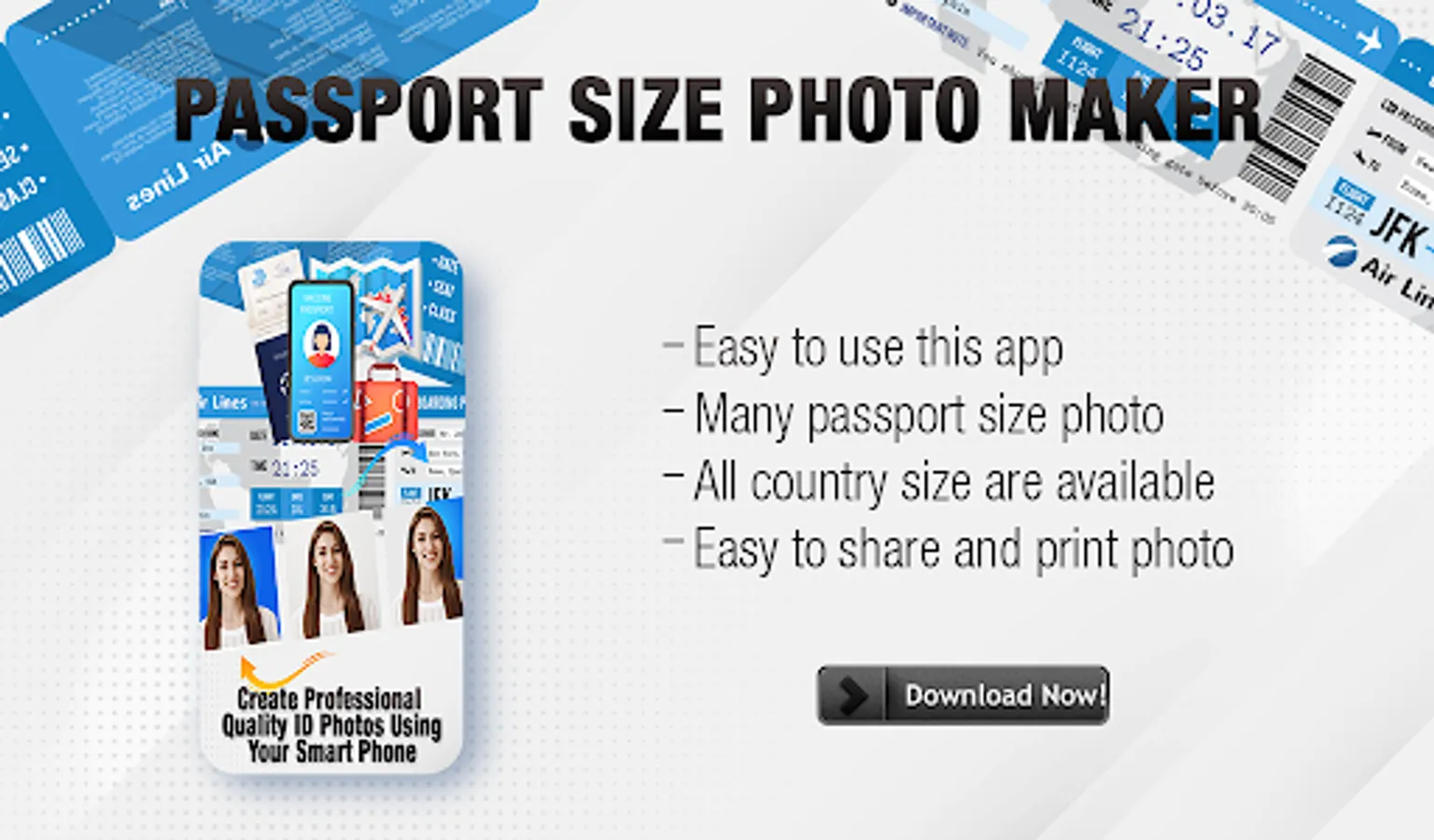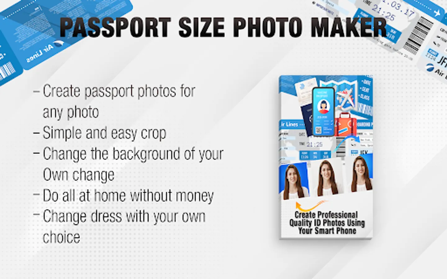 Install Passport Size Photo Maker application and create your photos as you wish. Passport Size Photo Maker app is fantastic and perfect photo editing app. You can edit your photo gallery and background with a professional touch.