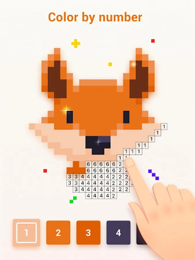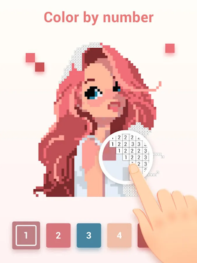 Each pixel block has a number inside. You can just color by number, and you’ll have a piece of super cool pixel artwork! Show your talent to your friends!