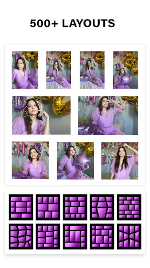 🎈 Are you want to create awesome photo collage frames and make your all memories pics at one place? So, using photo collage maker you can create the photo frame with multiple pics and give the best photo effect using photo editing tool. Select multiple pics from the gallery and apply your favorite photo collage frames from the collection dashboard. Further you can rearrange, edit, filter each photo from the photo collage maker tools.