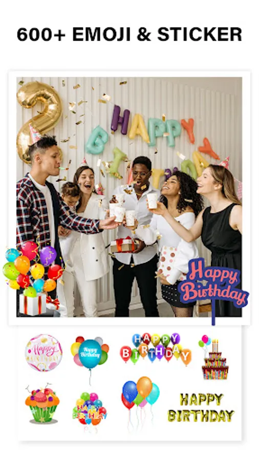 🎈 Write "Name on Cake", add photos on cake, apply frames and borders to photos, add stickers.