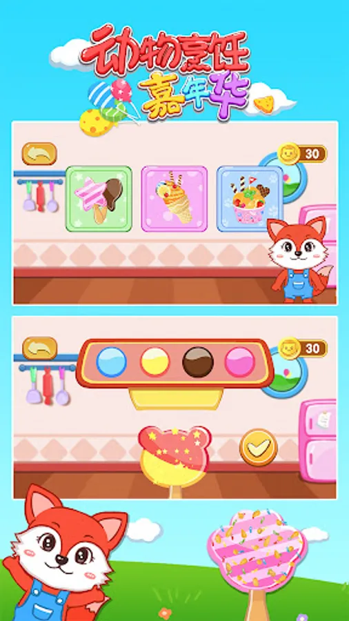 ”Lovely animals”, little fox, little monkey, lionet, Mr. Penguin and so on. They like many kinds of food, so make them food and get their appreciation and gold coins.
