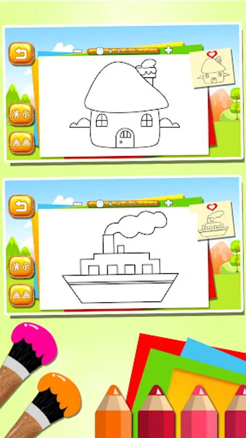 - Demonstrate the baby & young children how to draw the pictures steps by steps.