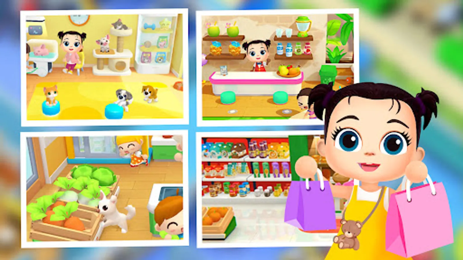 Happy Shopping includes different spaces with various characters of all ages and professions, as well as a plethora of objects to experiment with. The game develops creativity and imagination while children learn, and improves language skills through the creation of stories.
