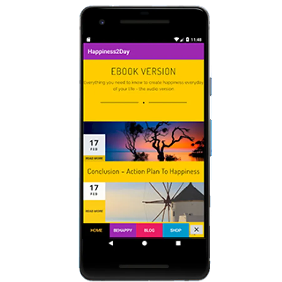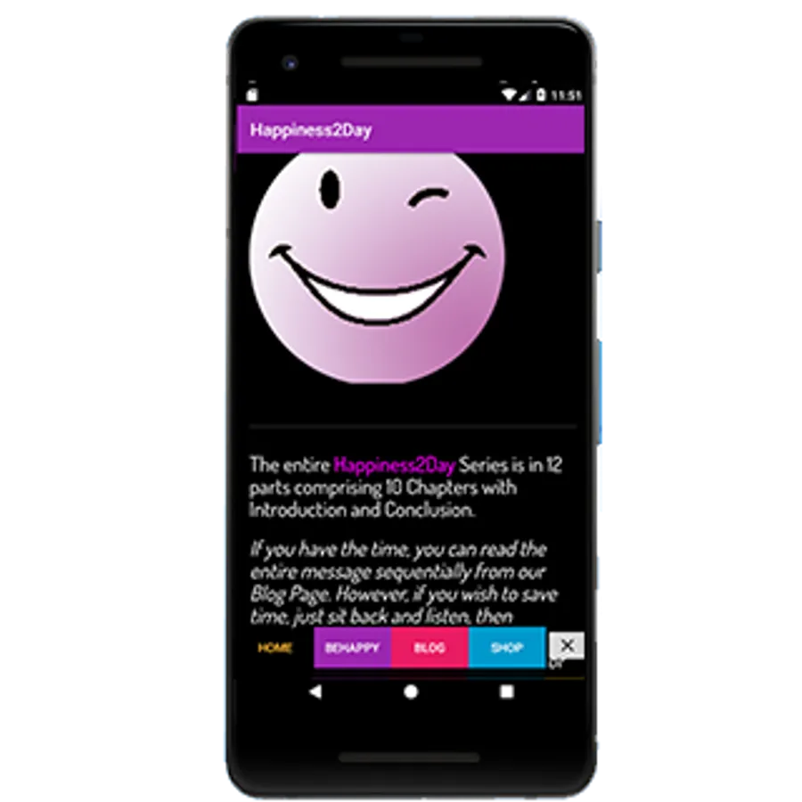 Be Happy. Are you unhappy with your current situation? Then this application is just for you. By following the principles within this guide to happiness, you will be able to create happiness every day of your life. You can read the blog posts, or you can download the eBook, or you can listen to individual chapters, or you can order for both Complete Audio Series plus the Complete eBook.