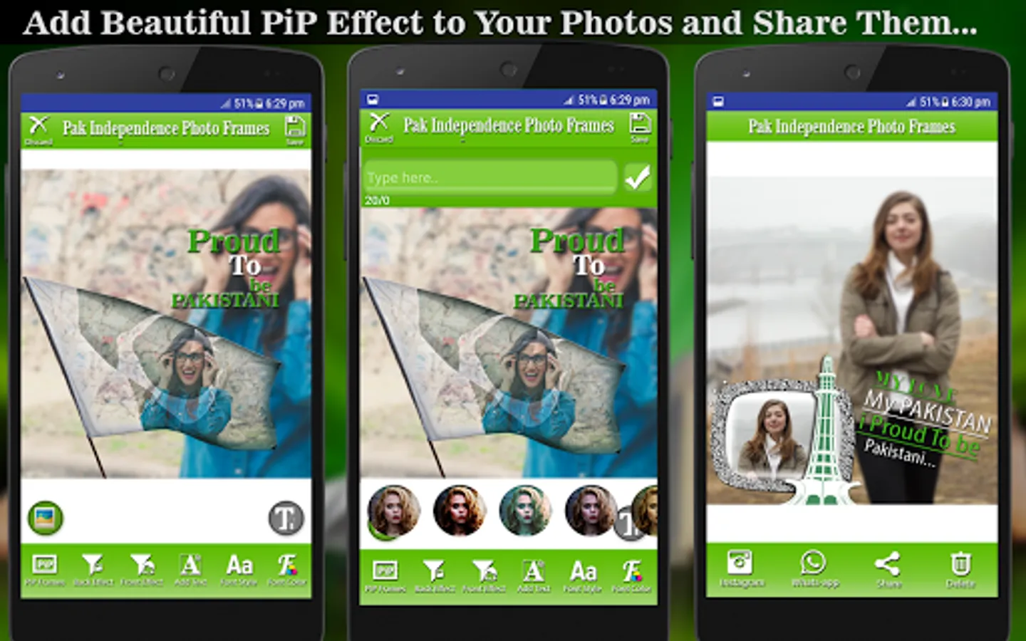 Happy Independence Day Pakistan, let’s celebrate this great day by framing your photos with our latest Independence Day Photo Frame. You will find a vast variety of unique and attractive Independence Day photo frames in this app, which make your selfies and images more amazing.