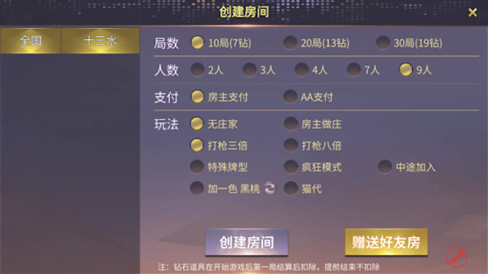最多可九人同桌,可坐庄,可打枪,全垒打;更有特殊牌型,疯狂模式,猫代。亲友圈和茶馆,助您足不出户约好友,快来组局吧!