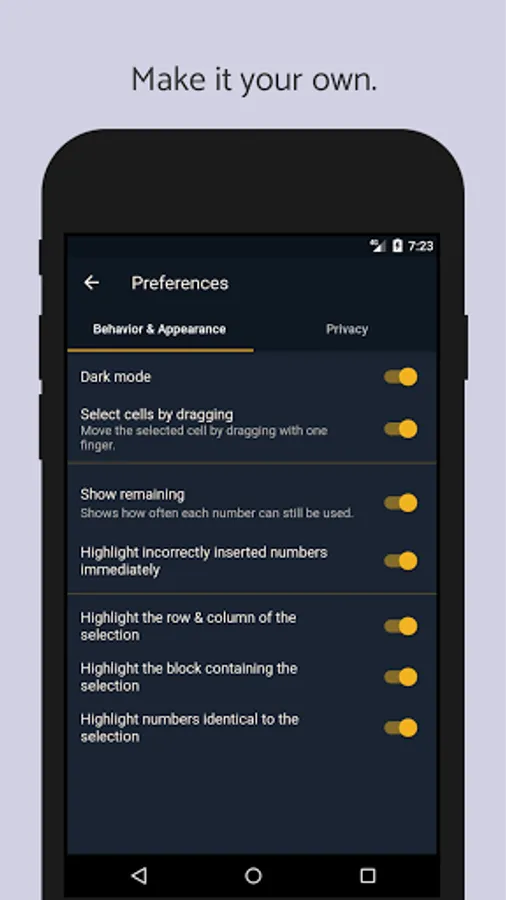 Experienced players can use various preference settings to tailor their experience to their liking. Use pencil marks to solve harder Sudoku and enjoy being able to undo every change you make. Our smart pencil marks update automatically when you place a number.