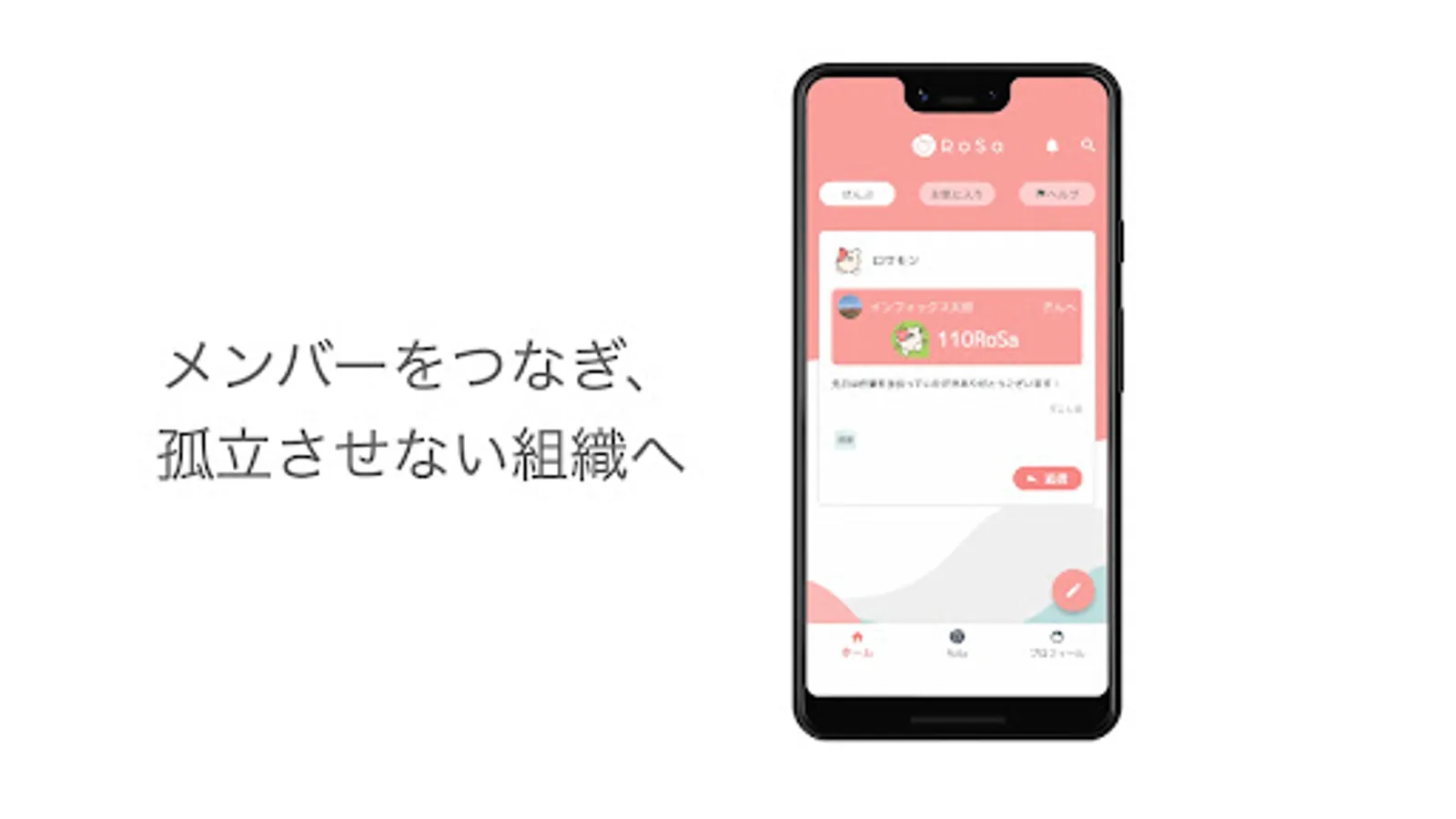 RoSa is an organization that connects each member individually, enhances the psychological safety of the organization, and raises the awareness of participation by sharing the present (thoughts and appearances) of team members and exchanging positive emotions to give RoSa points to each other. It is an internal SNS (social networking service).