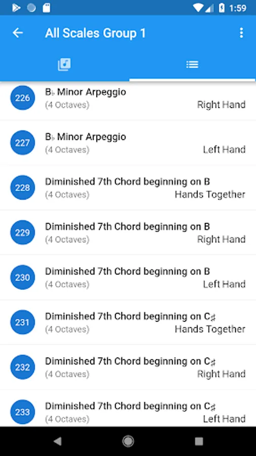 - Option to view a list of all scales on the syllabus