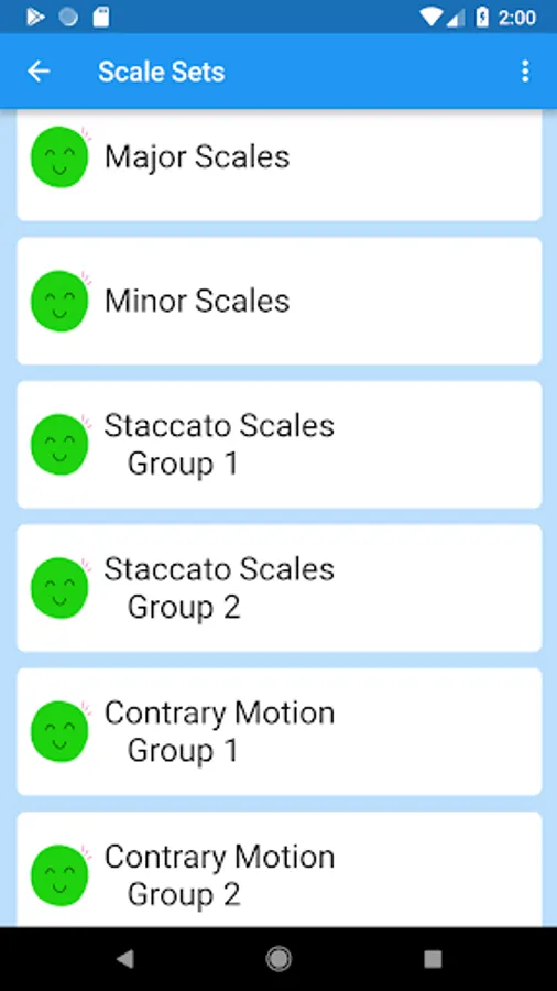 - Option to practise scales in specific sets e.g. major scales, minor scales
