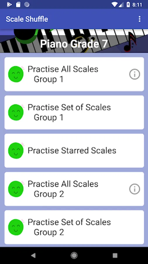 Scale Shuffle will systematically help you achieve your goal by picking out a scale flashcard for you to practise randomly, one at a time. The app contains all the scales from the most up-to-date ABRSM syllabus - and once you’ve practised all the scales, you can go back to the beginning and start all over again. The scale flashcards are shuffled each time you reset, so they’ll always appear in a totally random order.