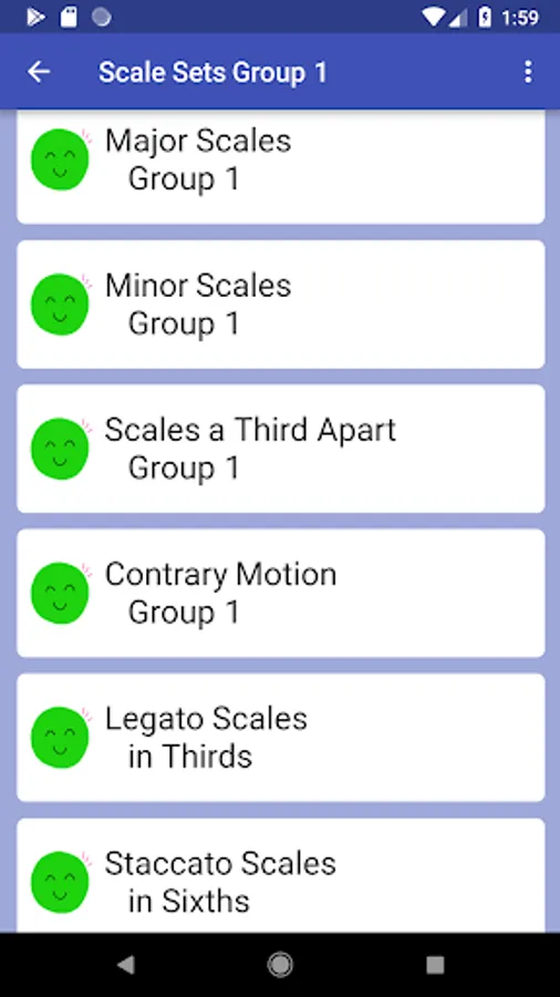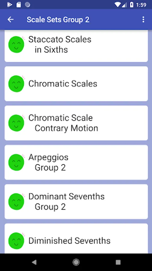 - Option to practise scales in specific sets e.g. major scales, minor scales