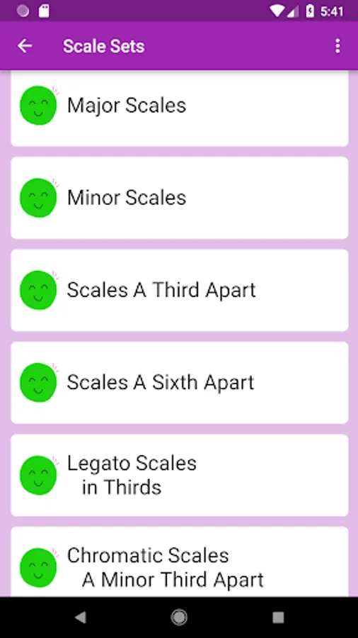 - Option to practise scales in specific sets e.g. major scales, minor scales