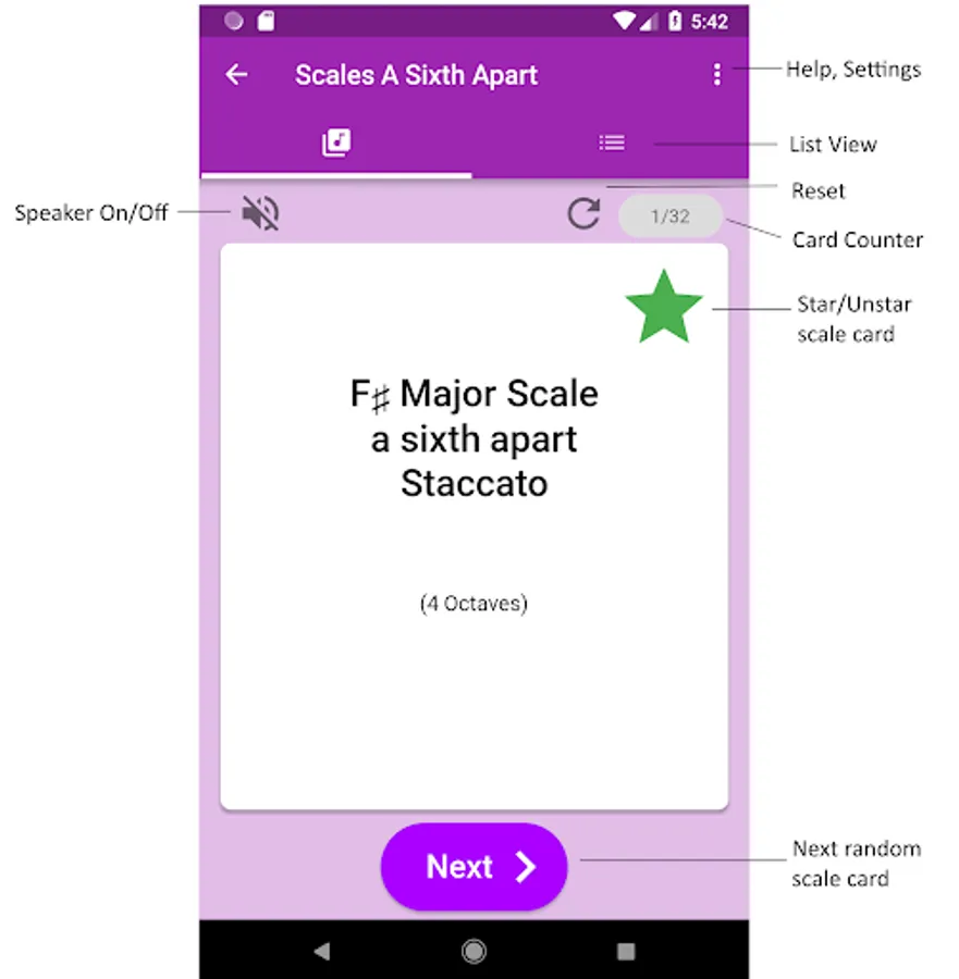 - Option to practise the list of 'starred' scales, so you can play through the ones that you personally find tricky