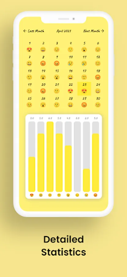 Track your stats in detail every day. View your mood statistics in detail on a daily, weekly and monthly basis with the statistics on the main screen.