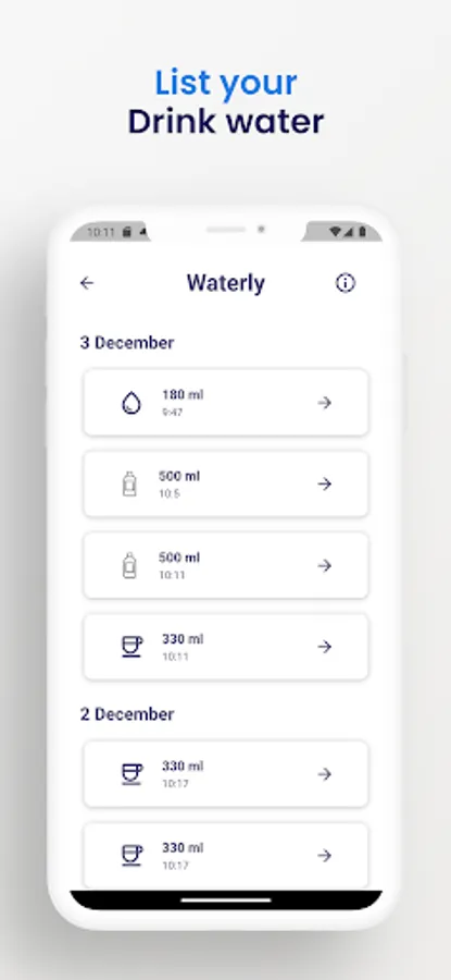 You can view the statistics of all the water you drink by week, month and year. You can see your average water intake and easily track the days you reach your goal.