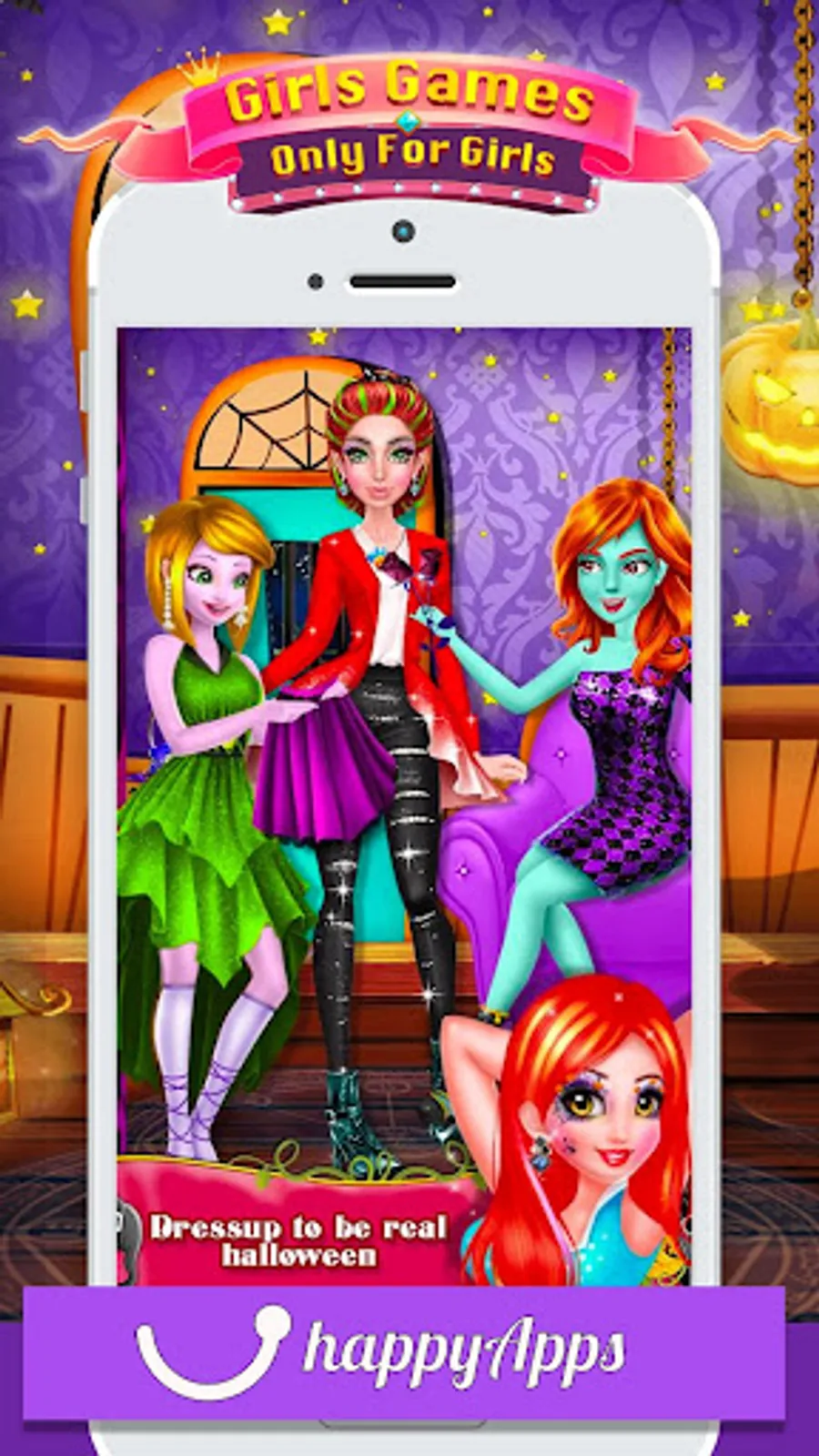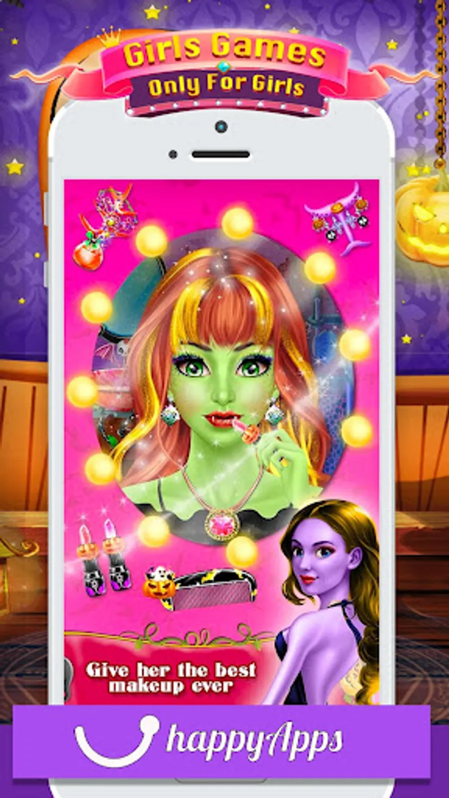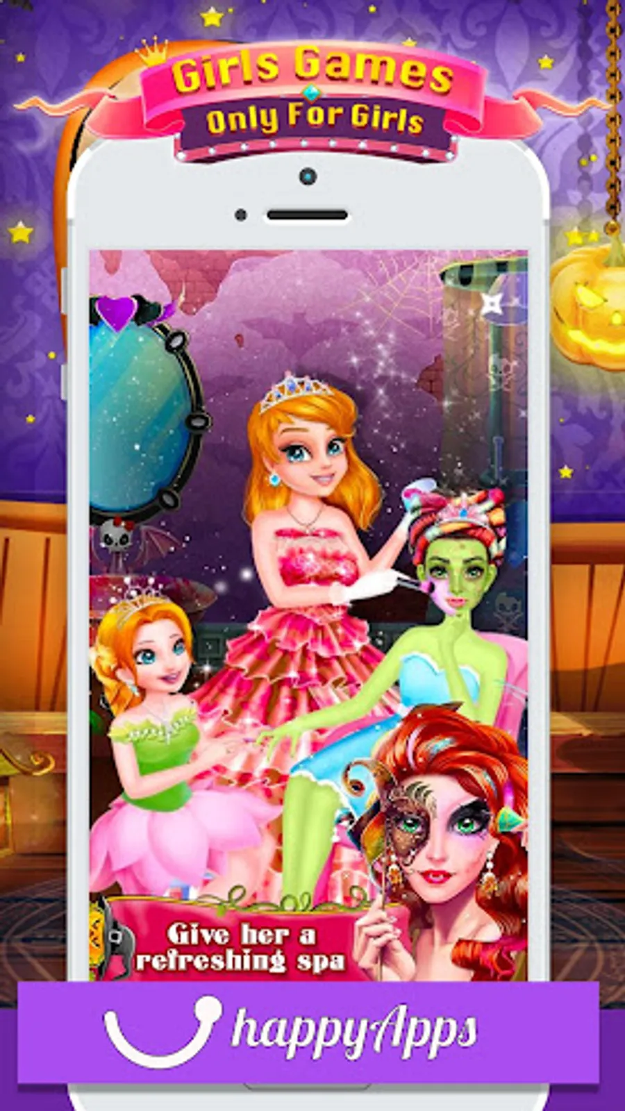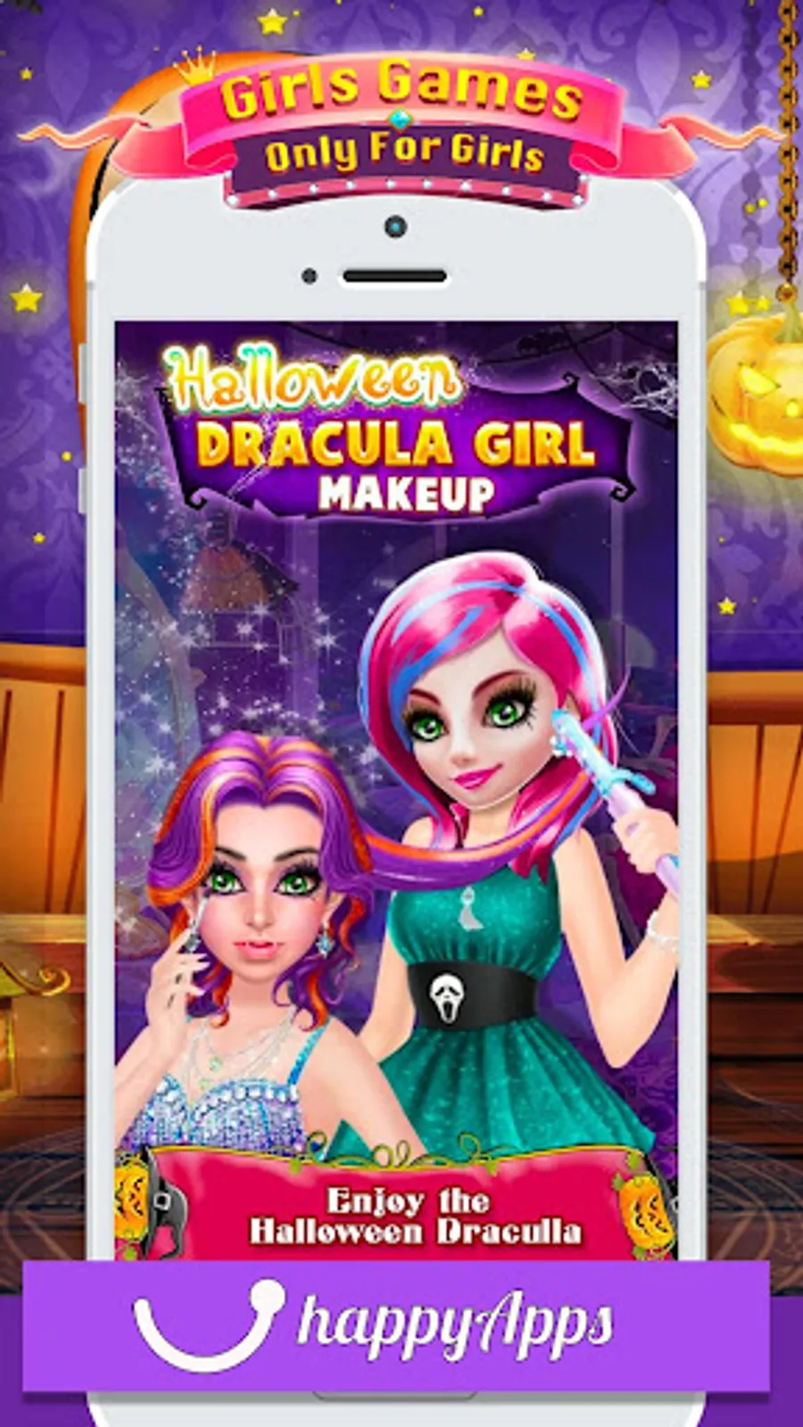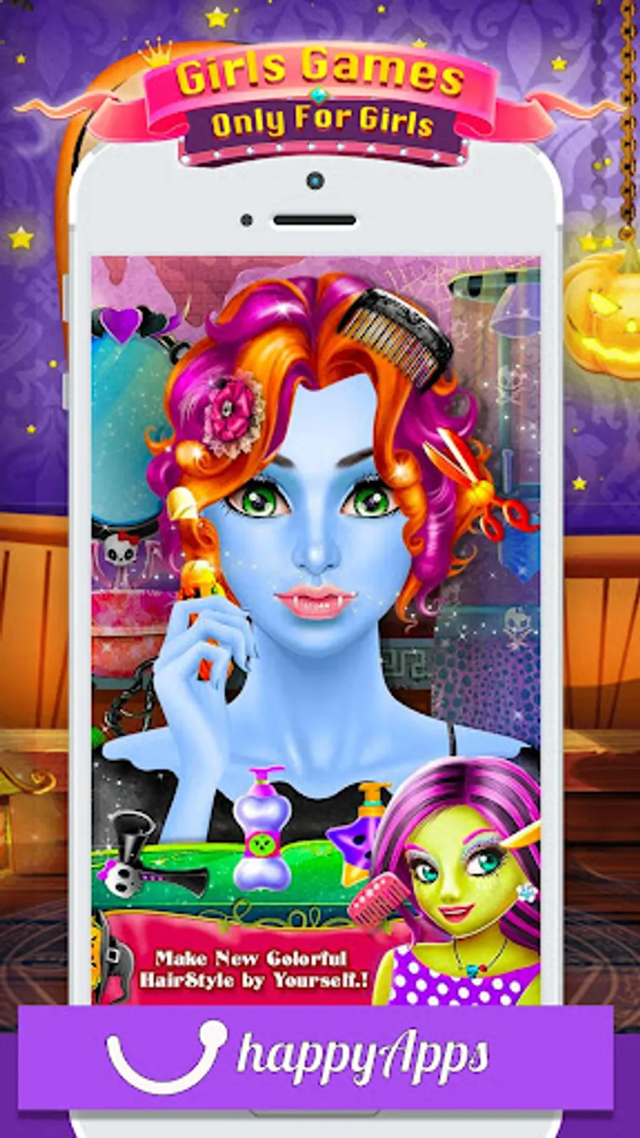 Princess Salon - Halloween Girl Makeup & Dress up is the best Halloween makeover game for girls. In this dress up game, you have to prepare characters for Halloween festival. Start with a spa treatment to give her clean and smooth skin by removing pimples and dark circle from her face. Next, become a professional hairstylist and make different braided hairstyles. Then choose the amazing makeup accessories like skin tone, blush, eye shadow, eyelashes, eye lenses, lipstick shape, eyebrows, earrings and much more. Once you are done with makeup and then choose the best dress up like a necklace, gloves, dress, footwear and much more. After completing all the makeover activities choose your favorite background and take a photo with Dracula girl.