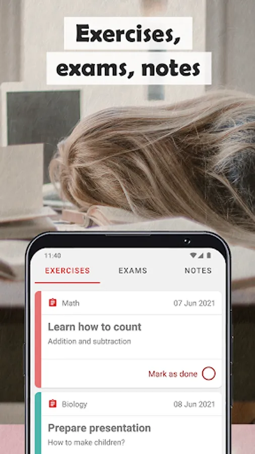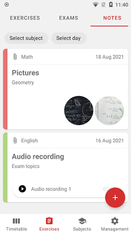 Simply touch an appointment on the timetable to add an exercise, note, or exam.