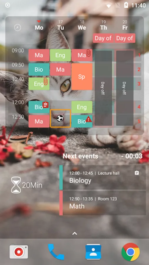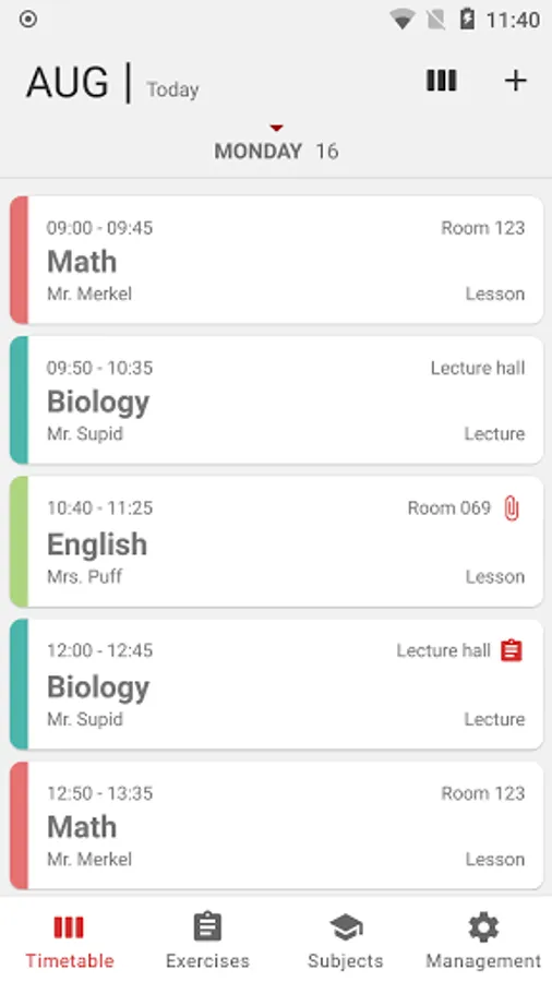 Timetable Neo is a very simple and intuitive schedule and calendar, suitable for pupils, students, teachers, parents and working people. Wipe to change the week, touch to select events!