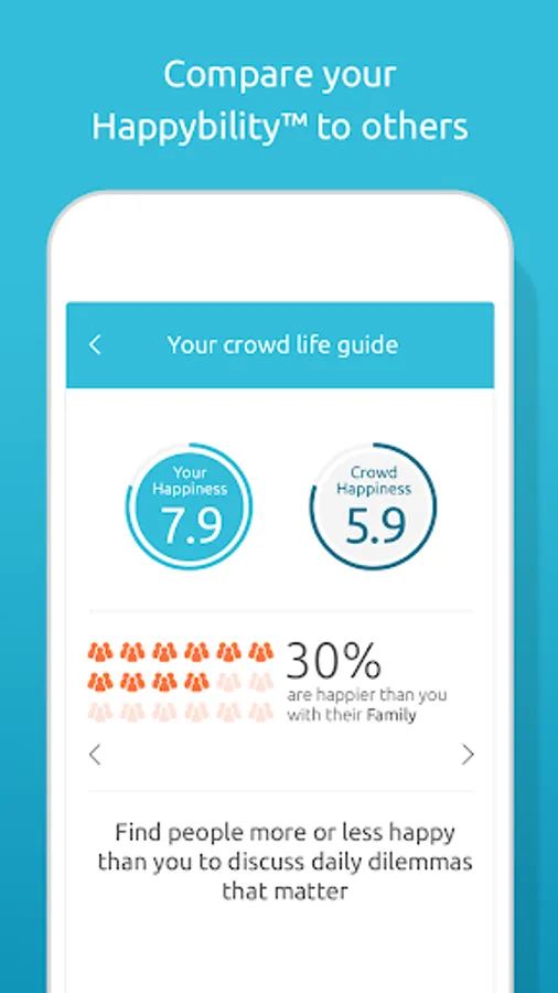 Compare yourself to people like you according to various demographic filters. Find out why some of them are really happy with their job, home, love life, and more. See how they handle their daily dilemmas, and should you do it the same way?
