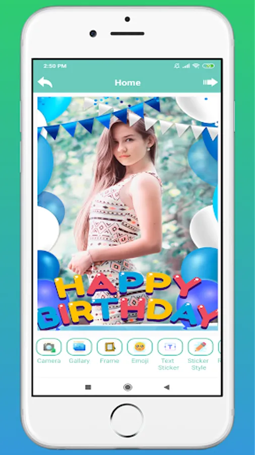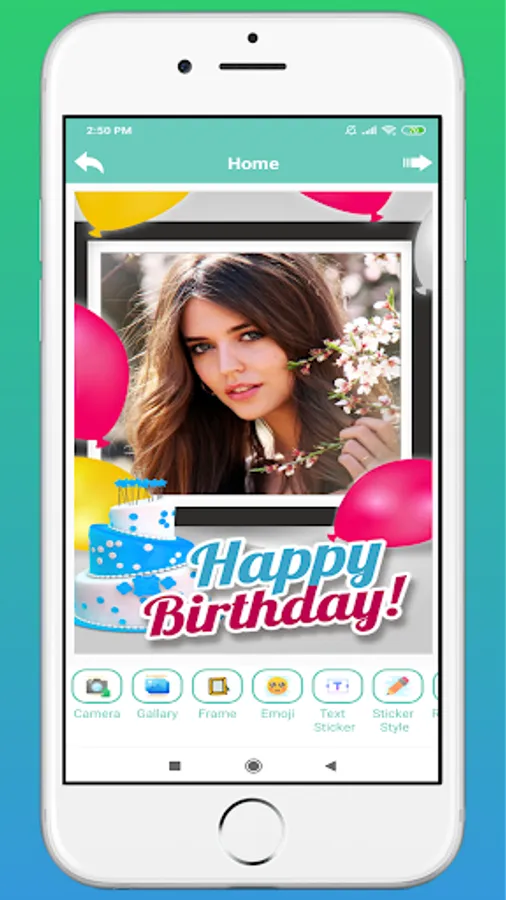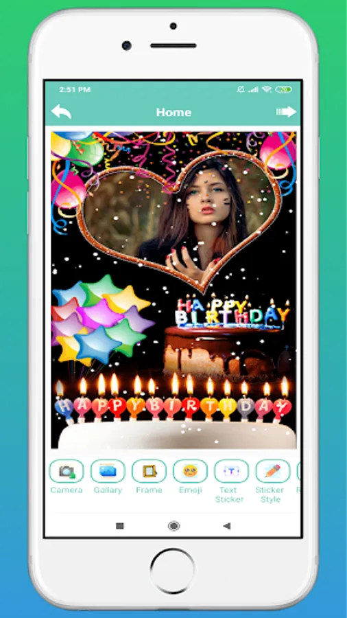 First select frame which you like. Select your photo from your phone storage. You can also take new photo from camera. You can also change frame.