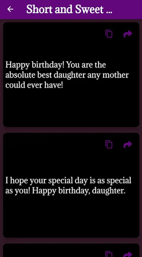 Are you looking for a short message to text to your daughter or a longer thoughtful note to write in a greeting card? Either way, you'll find a huge range of heartwarming birthday wishes for daughters to inspire you on this app.