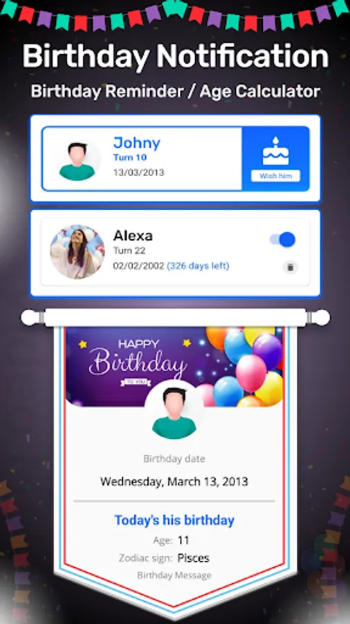 Birthday reminder is the primary feature of the birthday video maker app. Once you add date of birth, you'll be notified when Birthday is approaching and how many days remain until it.