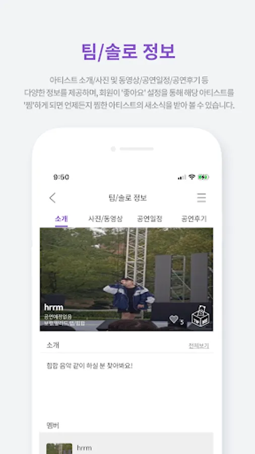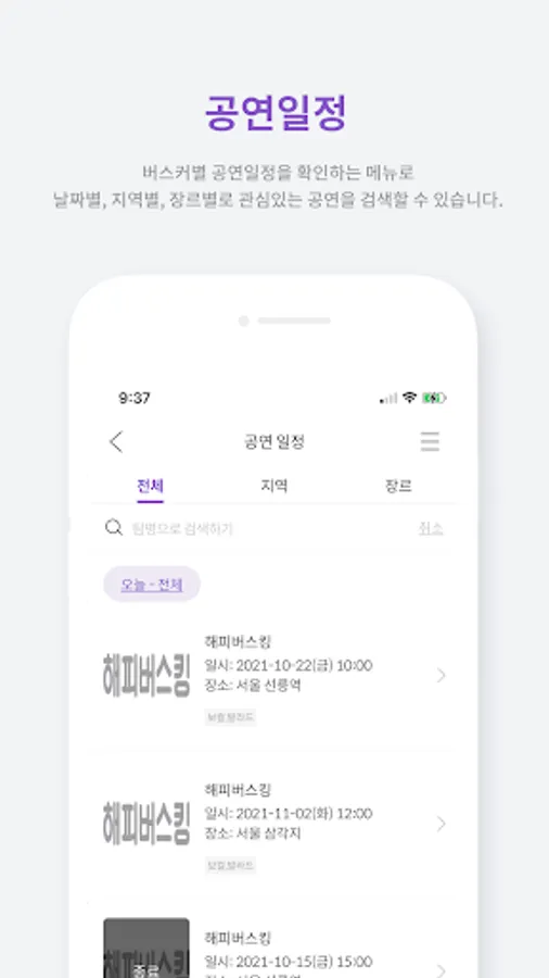You can check information about buskers, such as busker introduction, performance schedule, and photo/video viewing.