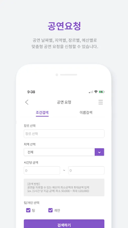 You can request a performance by custom searching for buskers by date / region / genre.