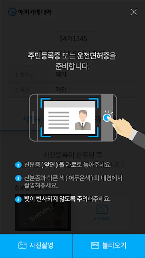 해피카메니아 폐차/이전 서류등록앱 Screenshots