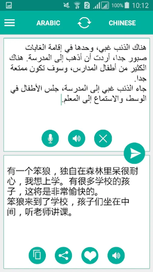 Addition Feature – Learn and Master the pronunciation as Arabic Chinese Translator has in built audio feature. Hear the translated text and conveniently communicate with your friends, girlfriends, boyfriends, family members or tourists.
