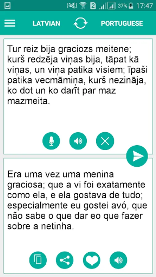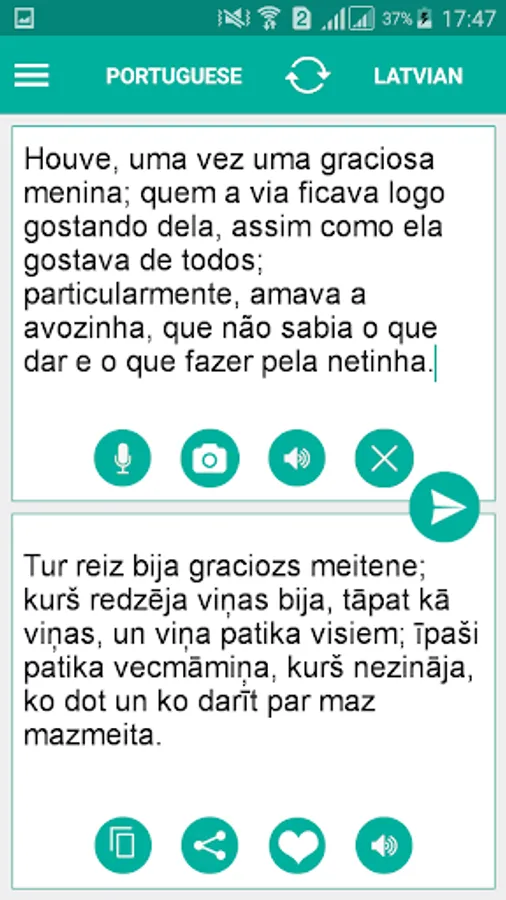 This free app is able to translate words and text from Latvian to Portuguese, and from Portuguese to Latvian.