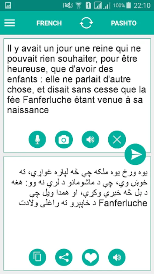Bonus Feature – Learn and Master the pronunciation as Pashto French Translator has in built audio feature. Hear the translated text and conveniently communicate with your friends, girlfriends, boyfriends, family members or tourists.