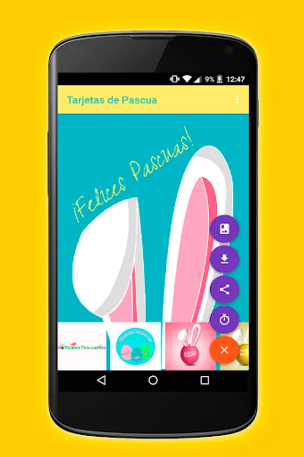 Share and / or send Easter cards through social networks and compatible applications you have on your mobile (Facebook, WhatsApp, Google +, Twitter, email, etc.).