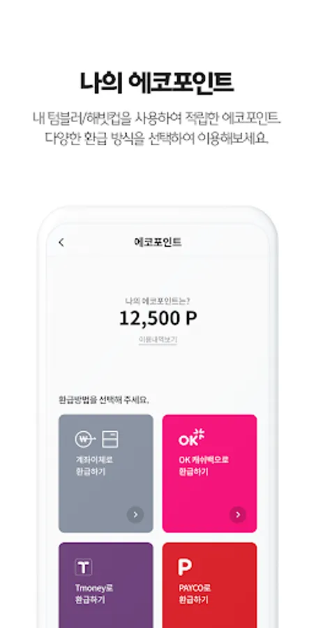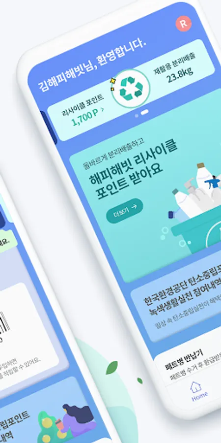 - Home: Check my eco points/recycle points and various event information and environmental stories.
