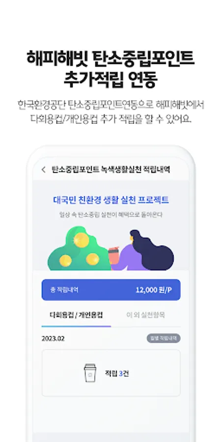 - My: Check my grade and performance, provide information on benefits for each grade, and check the positive effects Happy Habit has on the environment.