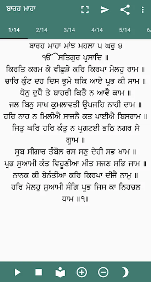 In Punjabi, Guru Nanak's Barah Maha in the measure Tukhari is not only the oldest composition belonging to this genre but also the first in which the theme of love poetry has been transformed into that of spiritual import. He made the human soul the protagonist which suffers in the cesspool of transmigration as a result of its separation from the Supreme Soul. This is followed by Guru Arjan's Barah Maha.