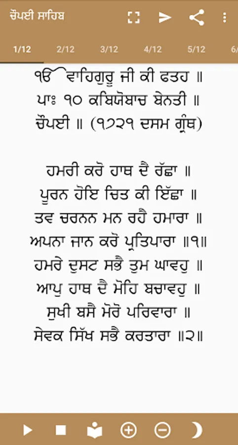 Chaupai sahib or Benti Chaupai is a prayer or Bani composed by tenth Sikh Guru, Shri Guru Gobind Singh Sahi Ji. This bani is present in Charitar 404 of Dasam Granth in Bani Ath Pakhyan Chairtar Likhyatey. This Bani is one of the five Banis recited by the initiated Sikh every morning. It is also a part of evening prayer of the Sikhs called Rehras sahib. The Benti Chaupai can be read at any time during the day to provide protection, positive focus and energy.