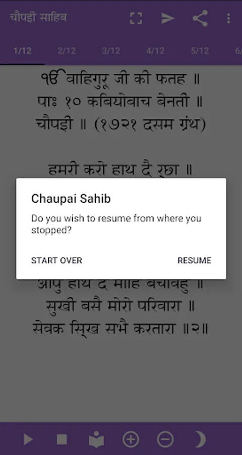2) User can listen to paath using Play, Pause and Stop buttons shown at the bottom of main page.