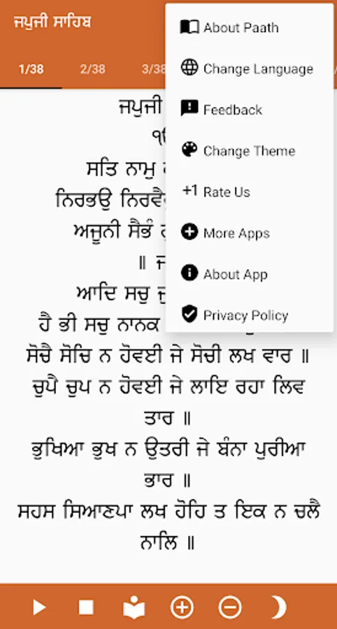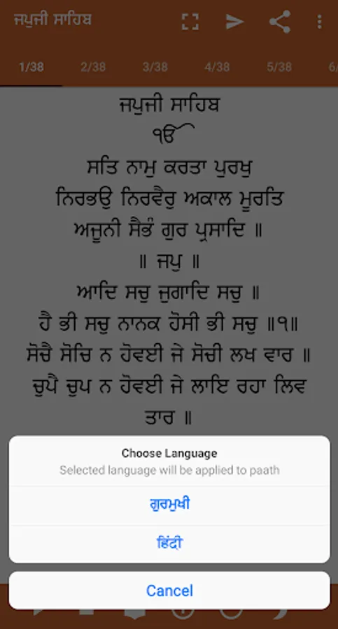5) User can select paath language from Gurmukhi(Punjabi) and Hindi.