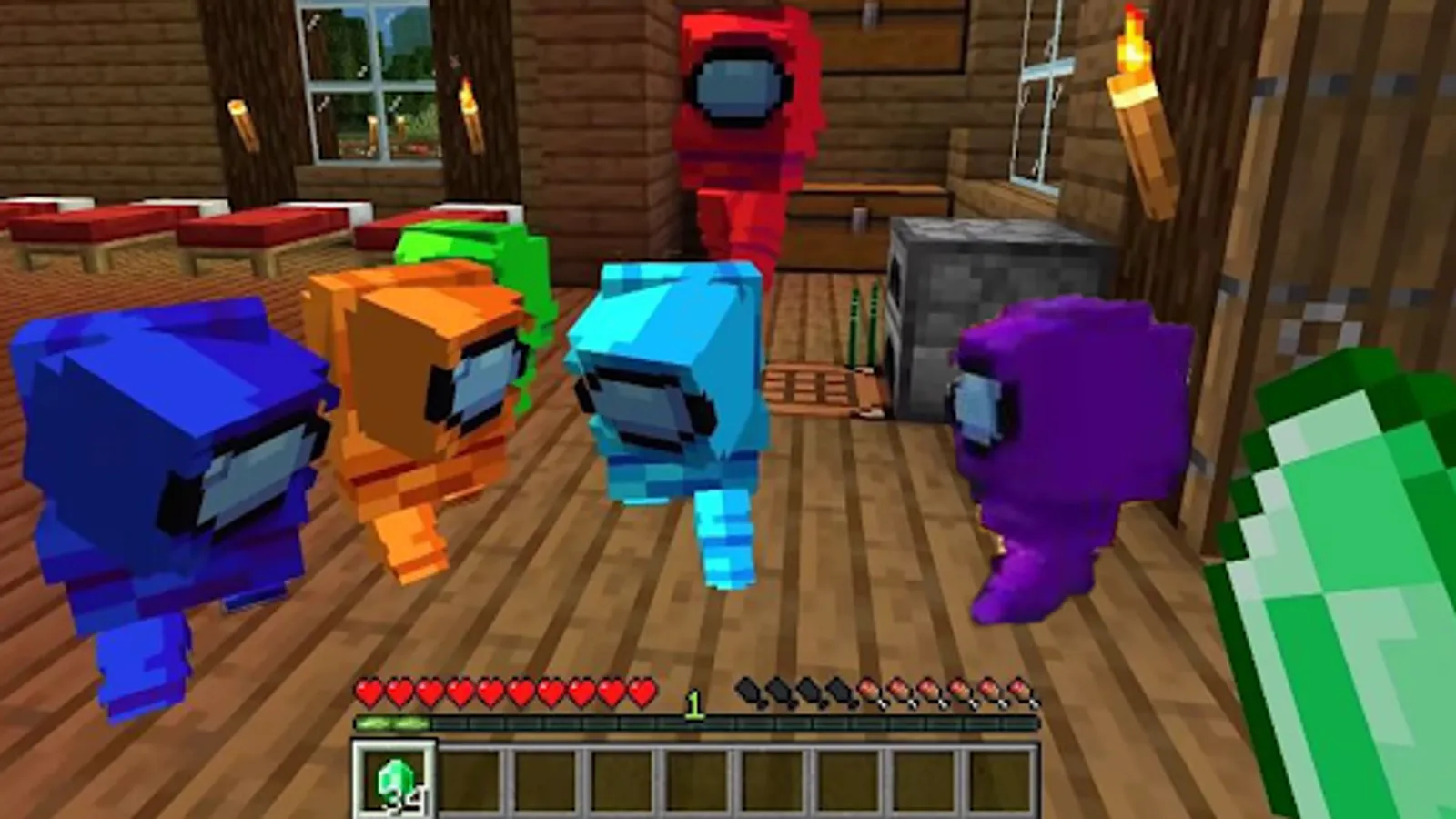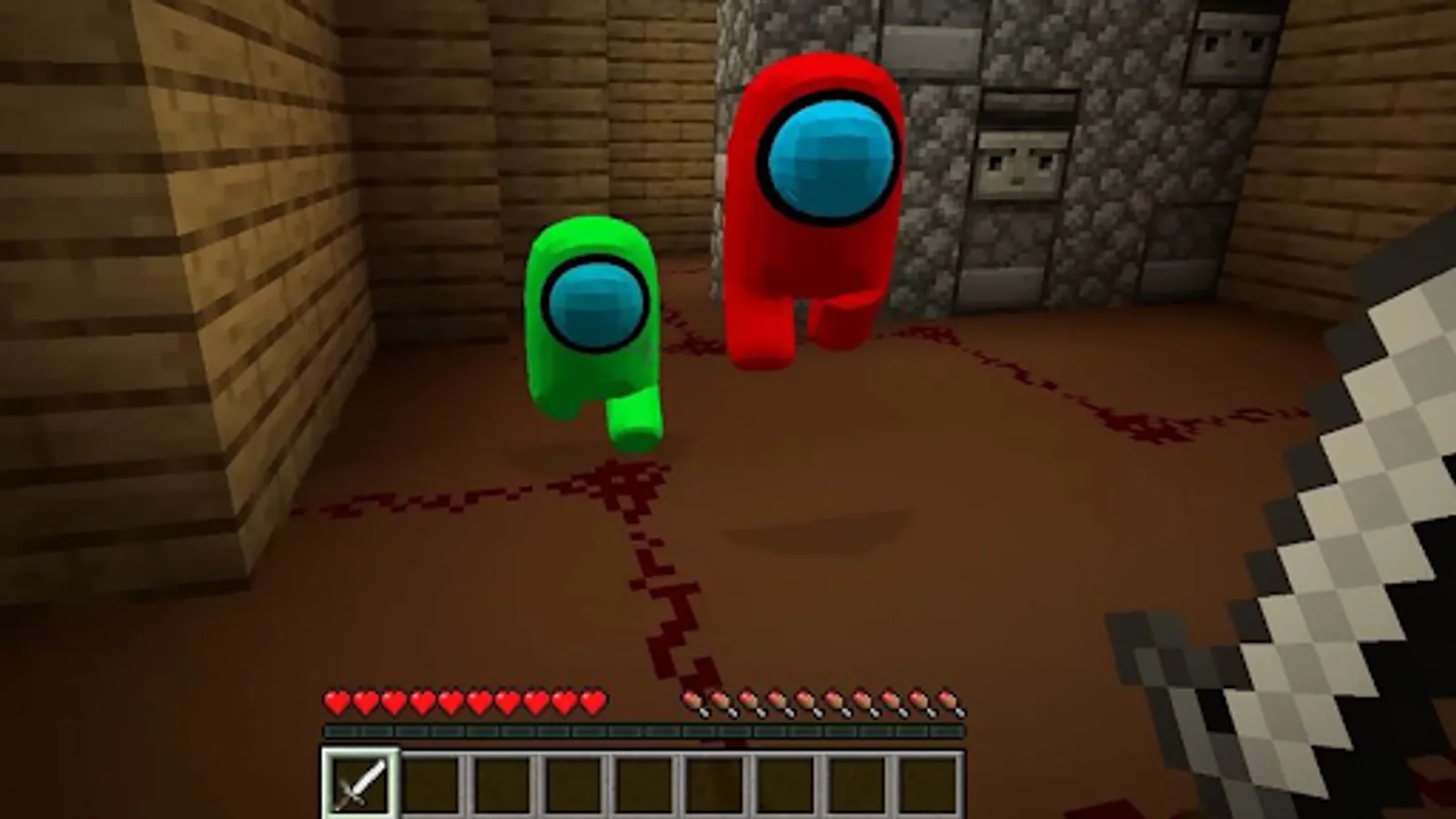 With this mcpe mod, characters from the game Among Us are added to your Minecraft PE world, where you need to find an amogus impostor, you can also take part in the game yourself using the amongus skin of a team member. The main task of the traitor is to destroy the maximum number of peaceful players, and prevent the crew members from completing all the tasks. Crew members can be tamed using a Bone. Thus, you can assemble a amos team and search for impostors together. Impostors are aggressive and bind players and crew amongus members.
