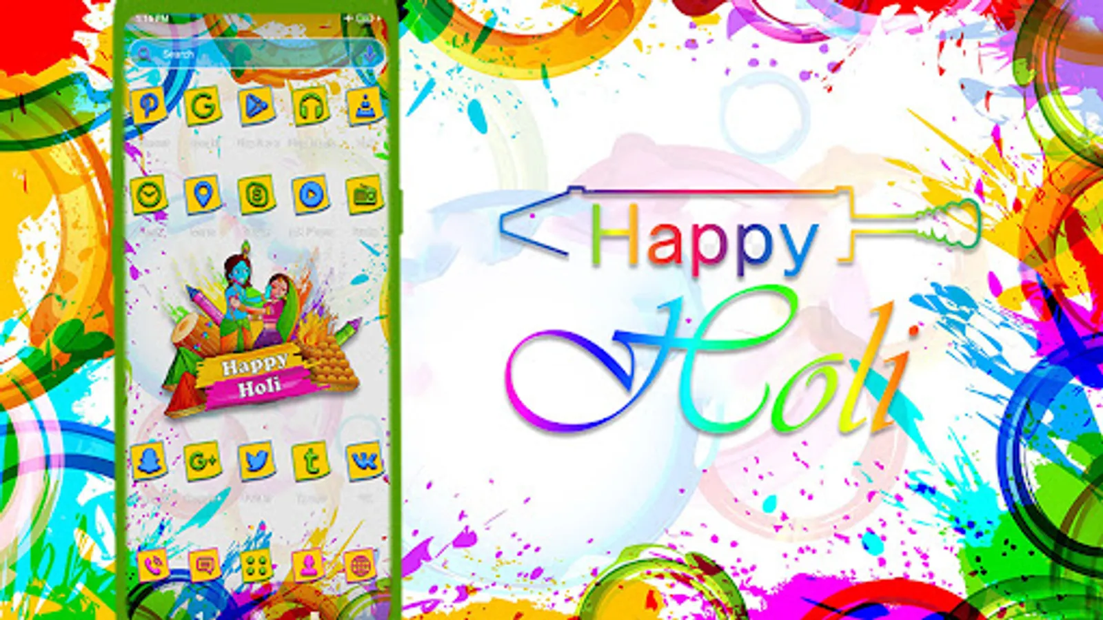 For own stunning icons, HD wallpapers and lots of themes, download Happy Holi Launcher Theme. Holi Theme is an user theme with several high-definition Happy Holi Theme wallpapers and Cool icons. It allows smoother and smarter running of your Android phone while at the same time offering you a perfect experience. The latest among loads of themes is the Happy Holi Launcher Theme. You will find what theme you want. If you're in comics, science fiction, photography or car, we've got all the best themes you want. Apply your favorite theme and show it off on your phone at any time. To own more beautiful themes, download the Happy Holi Theme now.